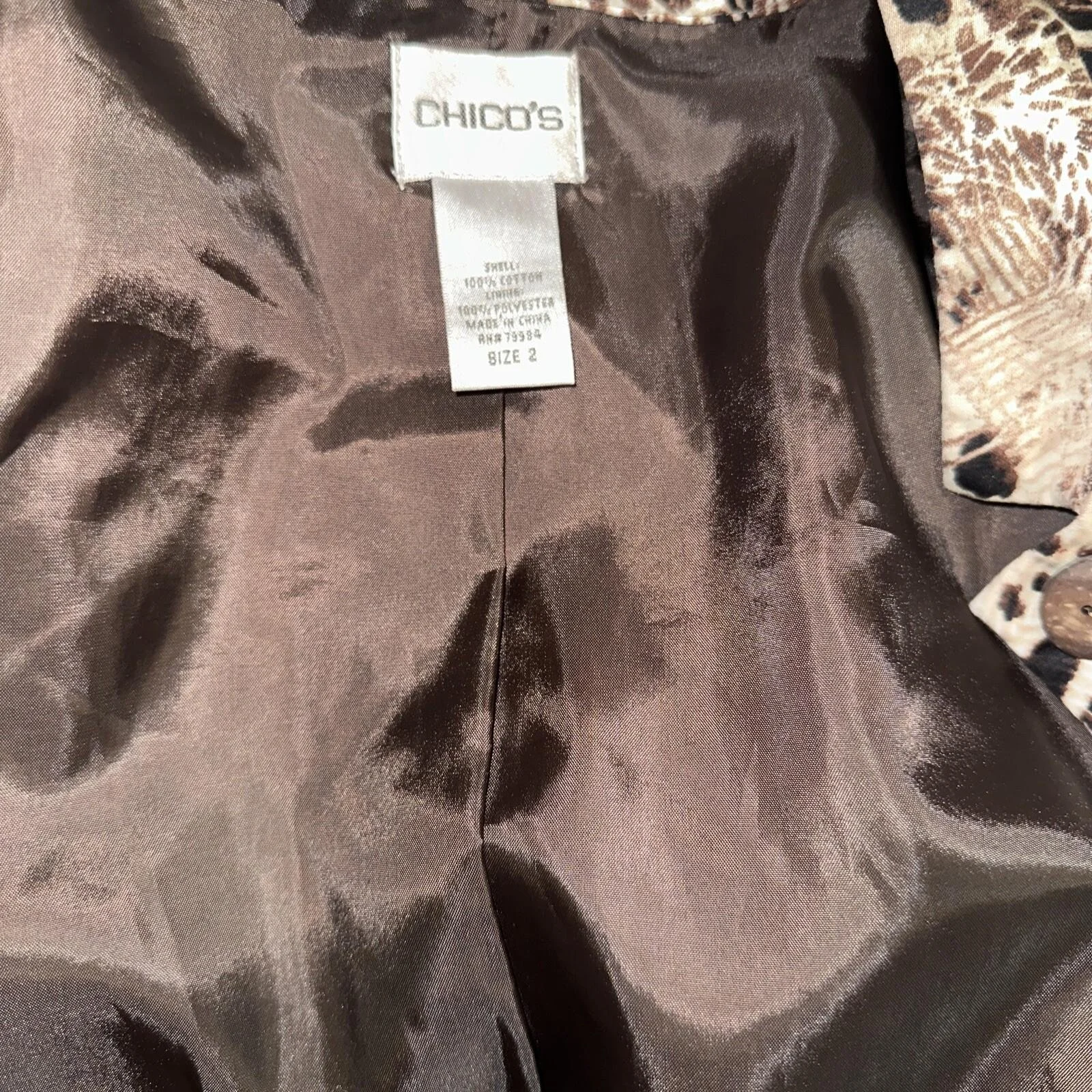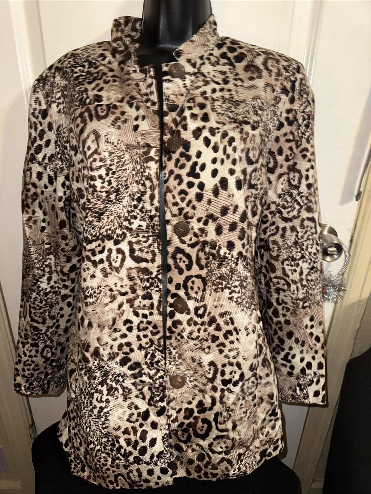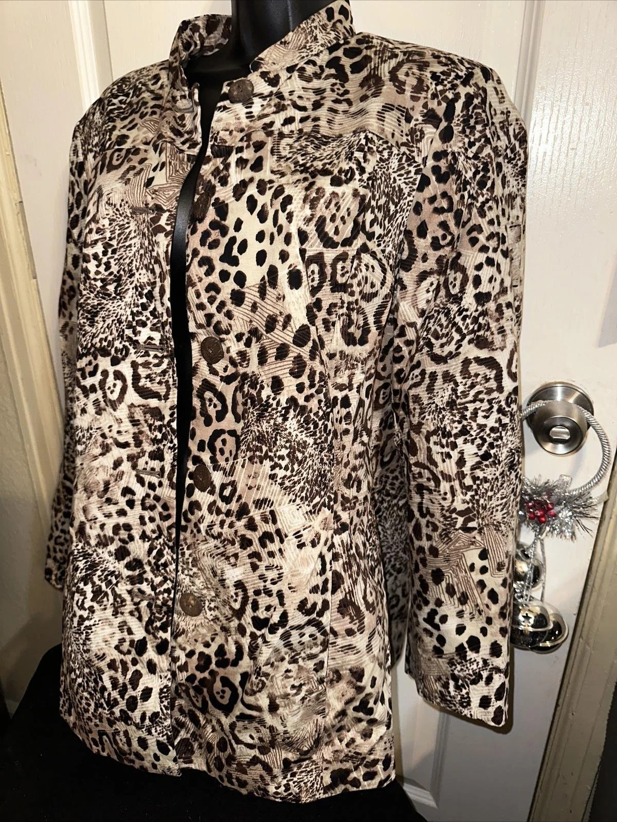 Features: ____mix colors _____ full button_____ great jacket ____very well taken care of____ cheetah print____