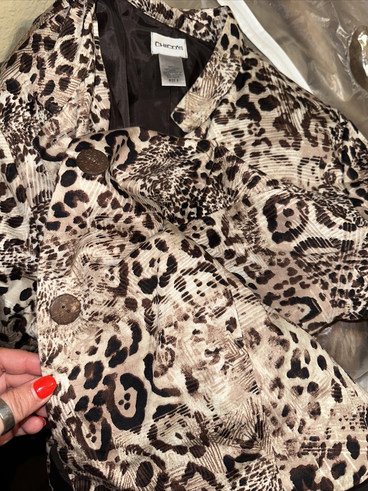 This is a fabulous ____ Chico's Full Button Long Sleeve Cheetah Print Fashion Blazer Woman's Size 2 ____