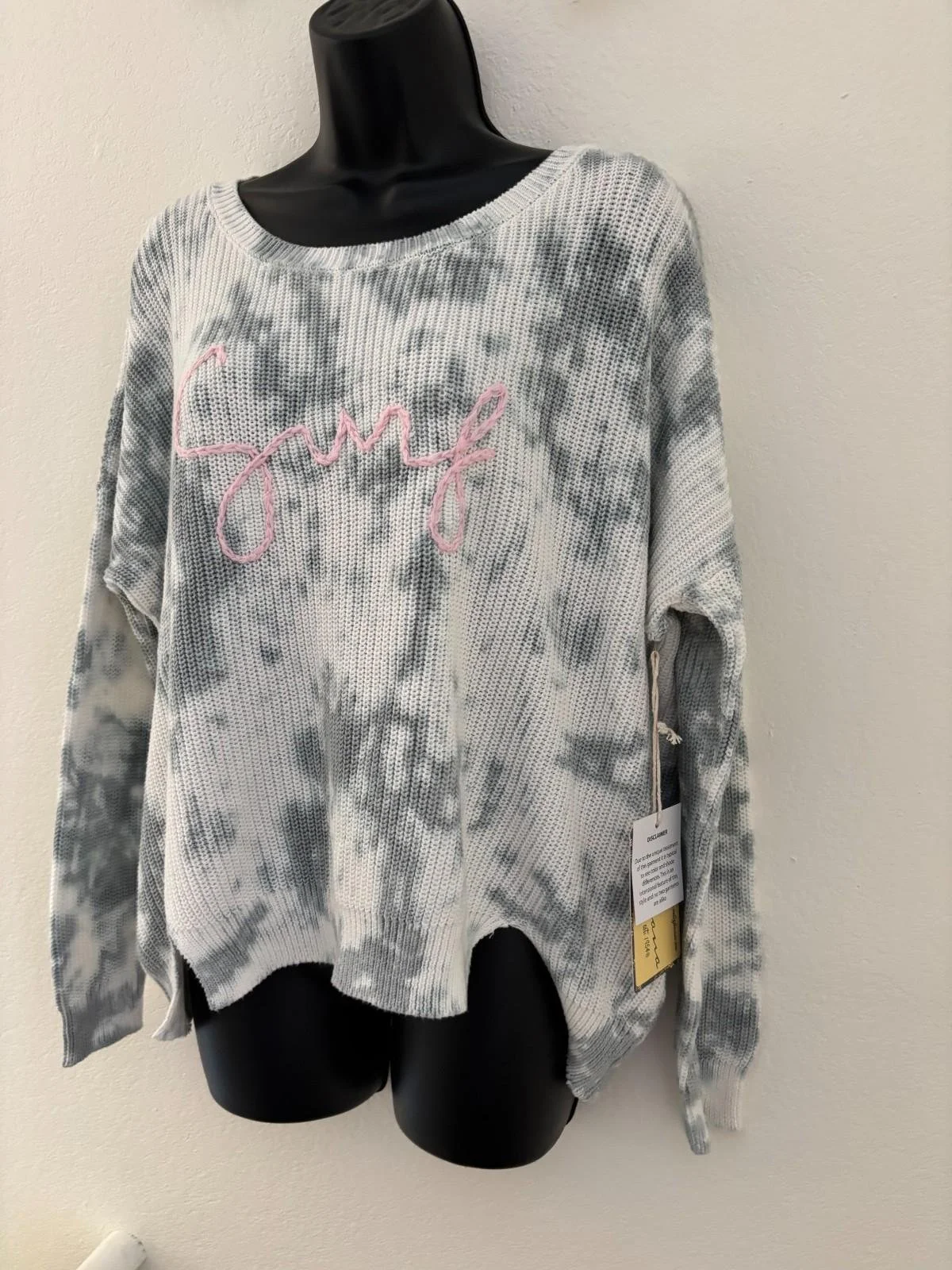 This is a fabulous NWT Vintage Havana Oversized Tie Dye Beachy Gray "Surf" Pullover Sweater
